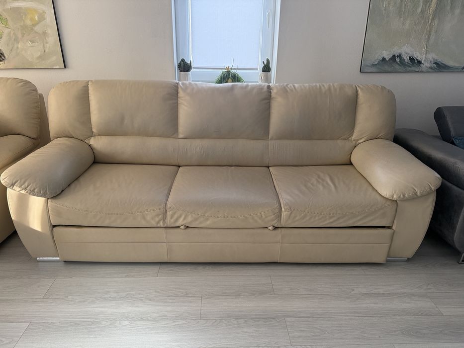 Set Canapea extensibilă + fotoliu din piele naturală – Mobexpert