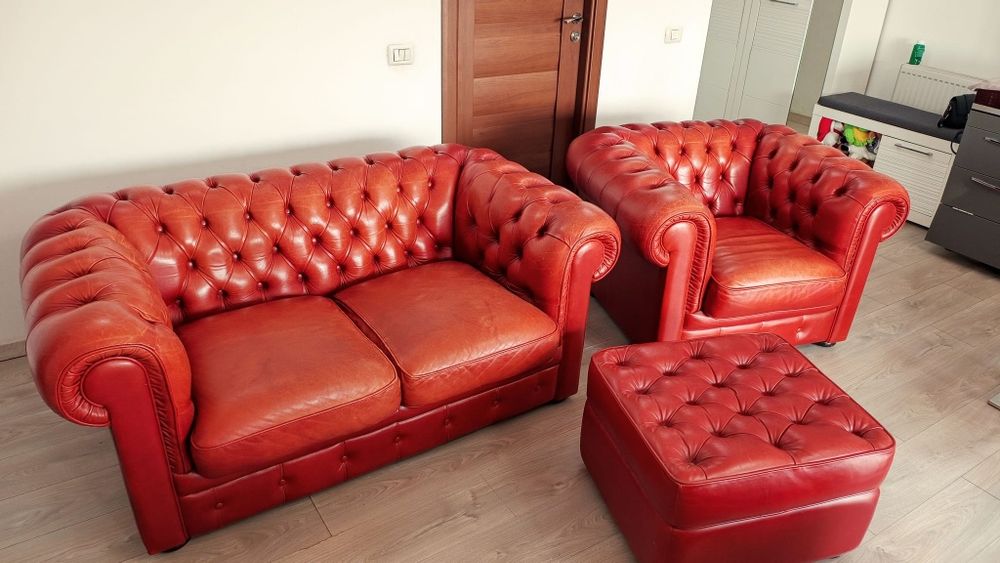 Vand canapea chesterfield si 2 fotolii