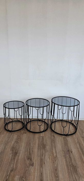 Set mese 3in1 rotund geam fumuriu cadru auriunegru -TRANSPORT GRATUIT