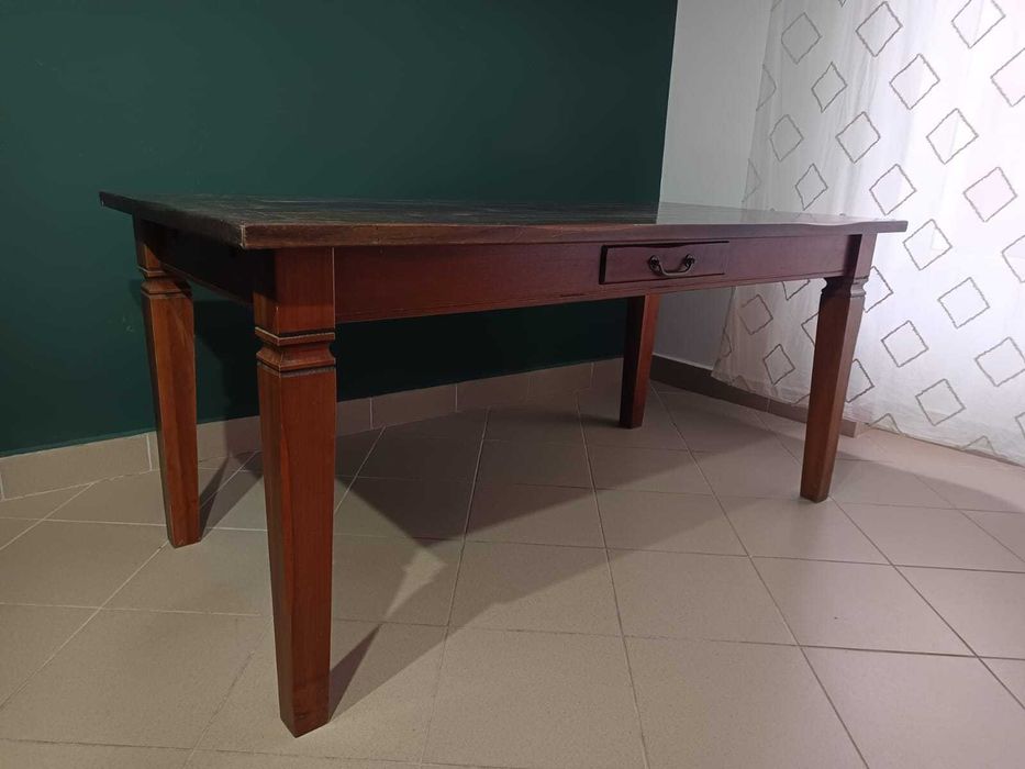 Masă din lemn masiv cu sertare – piesă clasică, durabilă