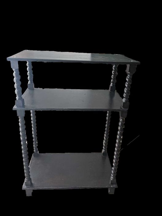 Etajeră vintage din lemn – cu coloane răsucite, 3 niveluri