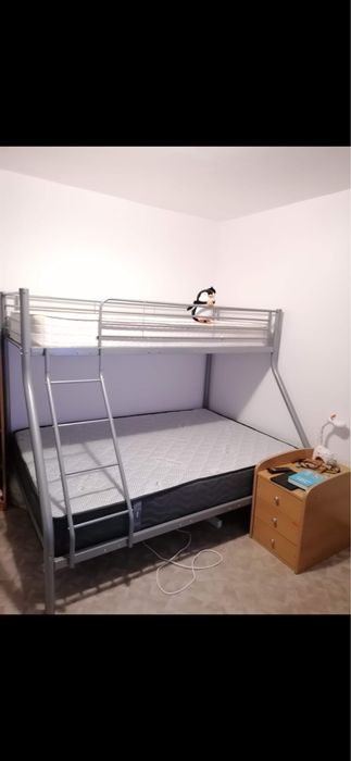 Vând suport de pat supraetajat, metal, gri