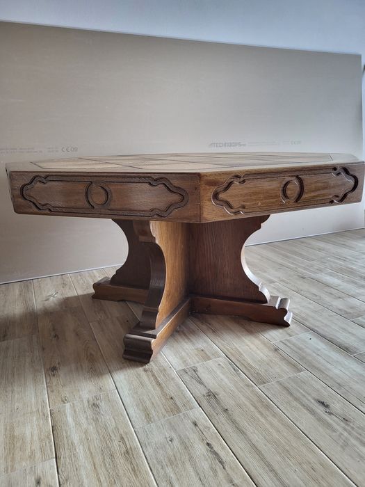 Masa din lemn masiv stil vintage.