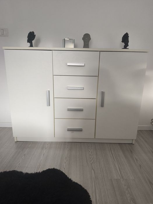Comoda alba 	2 uși, 2 rafturi, 4 sertare