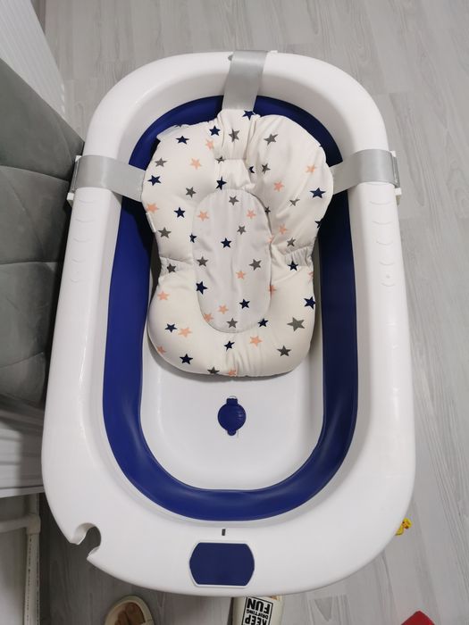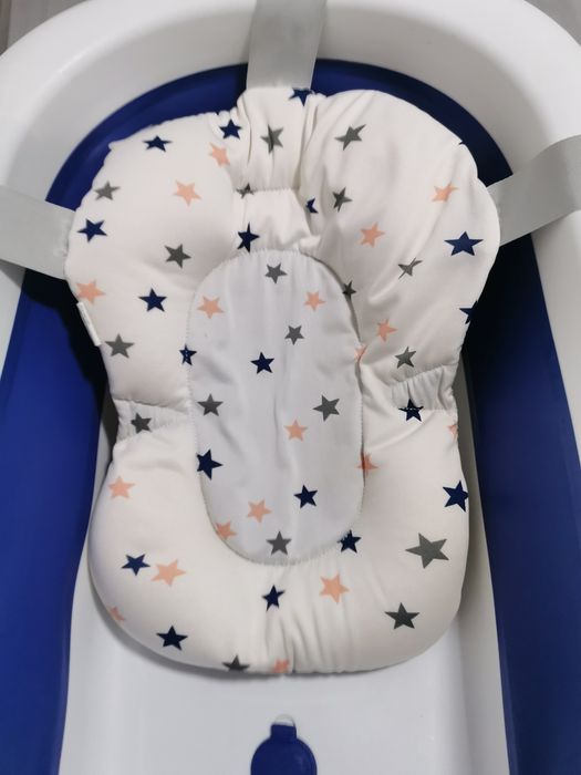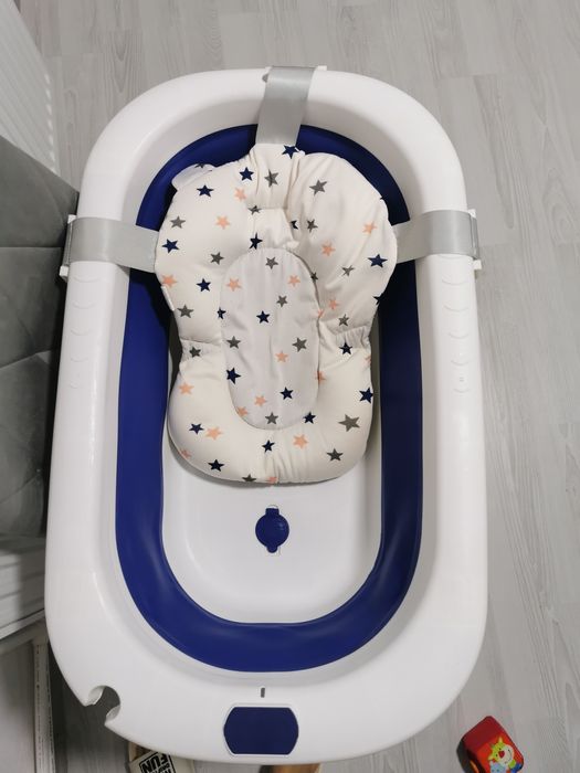 Cadita bebe albastra cu alb potrivită de la naștere cu pernita