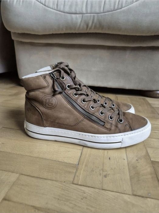 Ghete Paul Green de culoare maro, realizate din piele de înaltă calitate.