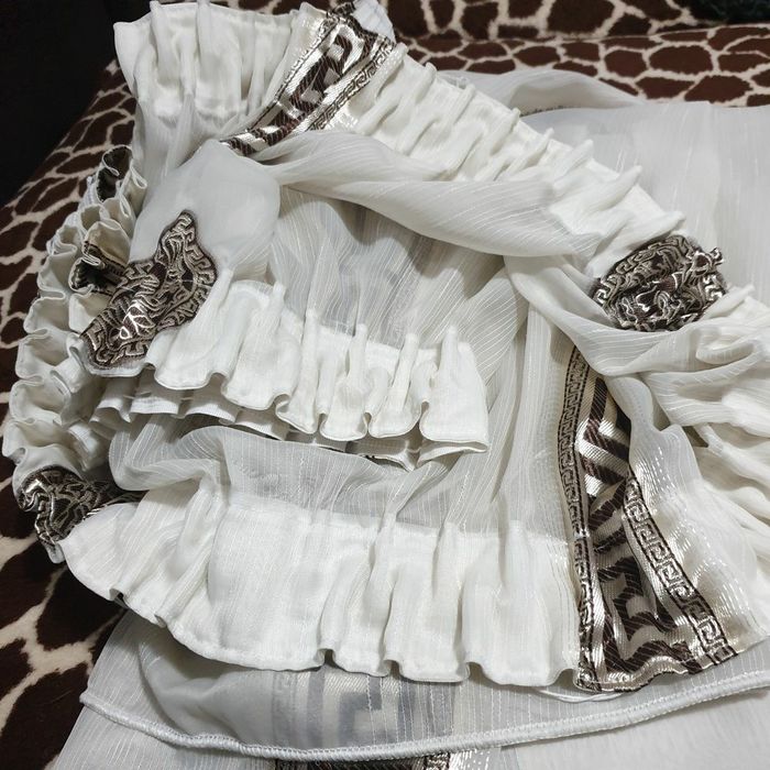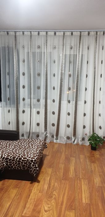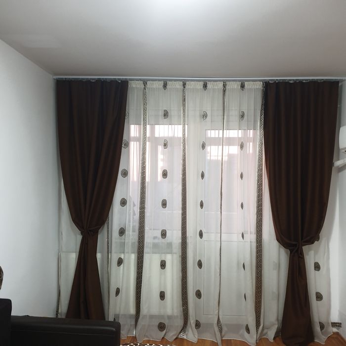 Perdea logo Versace,6m/2,50cm,alb cu maro, stare impecabila,ca noua și draperii maro 3,5m/2,50cm, fără defecte