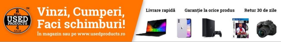 - Ridicare gratuită din showroom-ul nostru din Timisoara - Soarelui sau din magazinele Used Products Bucuresti, Arad, Oradea, și Cluj Napoca, la plata cu card bancar;