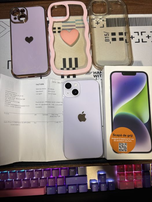 Telefon iPhone 14 Purple 128GB Liber de retea 85% baterie factura