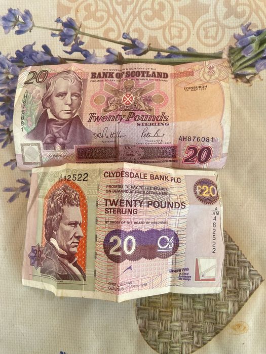 Vând 2 bancnote vechi de 20 lire scoțiene