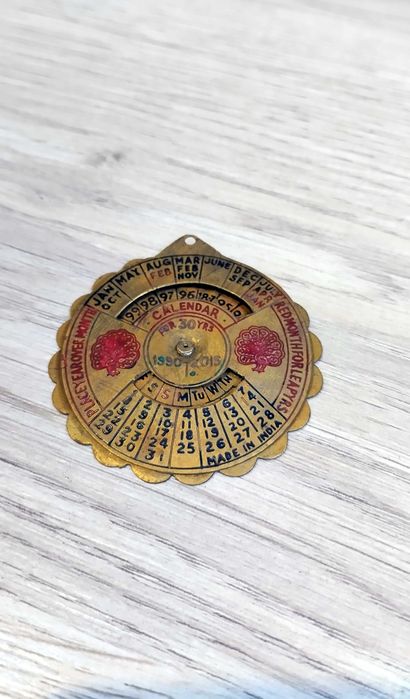 Calendar indian din alama, obiect decor vintage