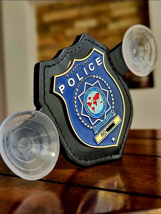 Insigna Parbriz metalica,piele naturala,ideal cadou! Serie,police
