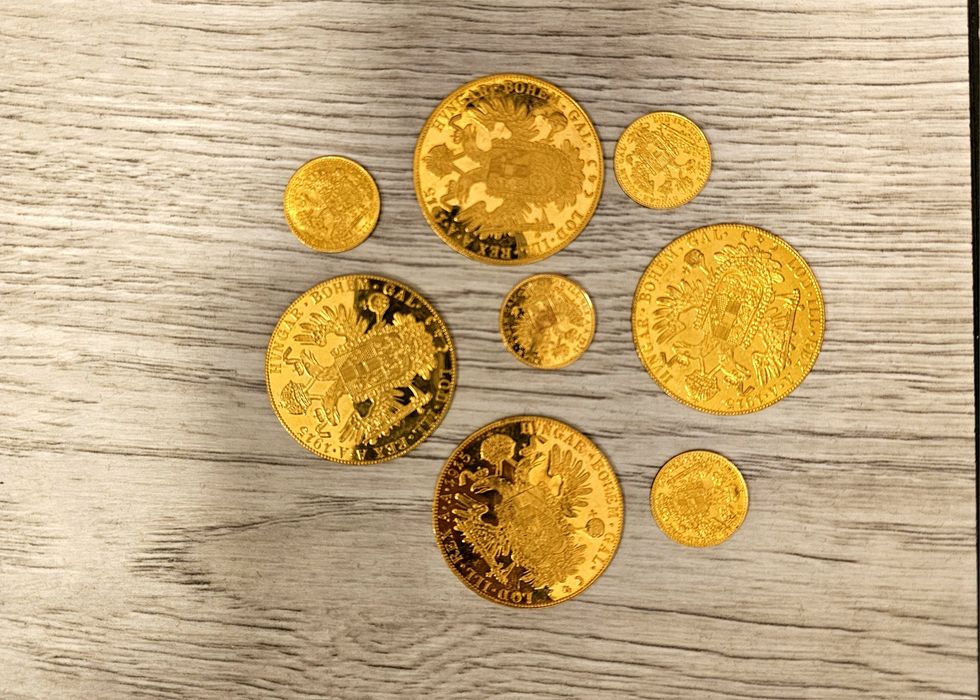 Copie moneda monede de 1 și 4 Franz Joseph Ducati aur cocoșei
