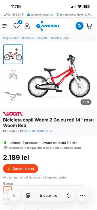 Bicicleta WOOM GO 2 modelul nou cu garantie