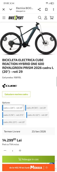Vand Bicicleta electrica Cube 29” 2025 300 km smart !
