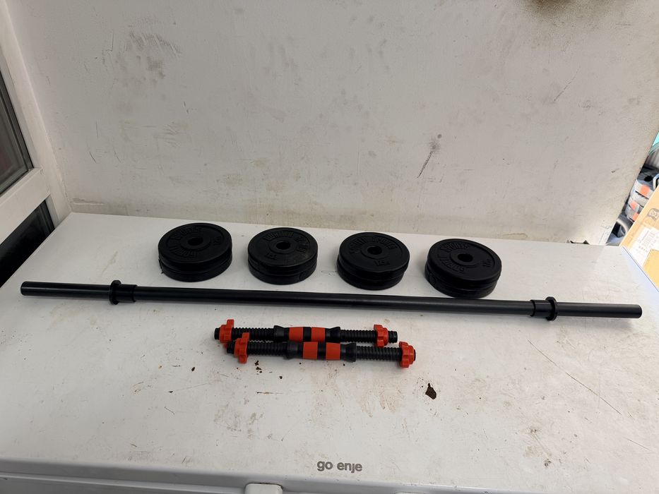 Pachet sala cu discuri, bara piept brate+gantere reglabile 13 kg.Total