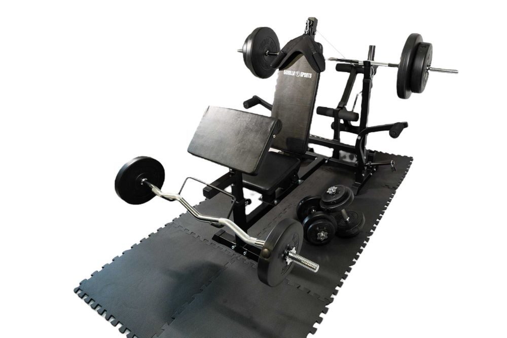 Banca Multifunctionala cu Set Greutati 100kg + Covoras Protectie