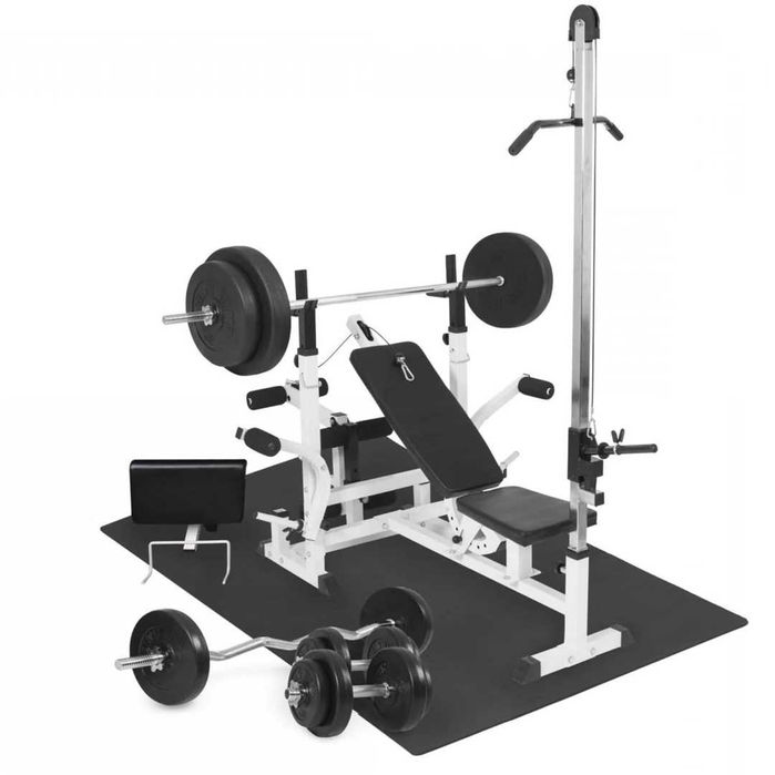 Set Complet Bancă Multifuncțională, Scripete, Greutăți 100 kg