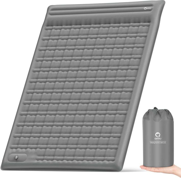 Saltea gonflabila cu perna, Qpau, cu pompa incorporata, 136x195cm