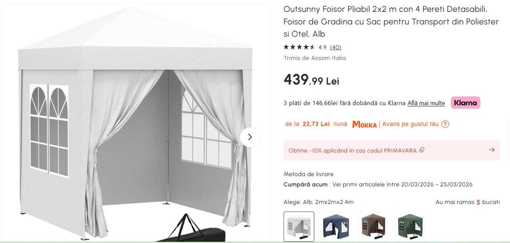 Cort/ Pavilion 2,5x2,5 m alb/  verde/ rosu pentru martisoare, targuri