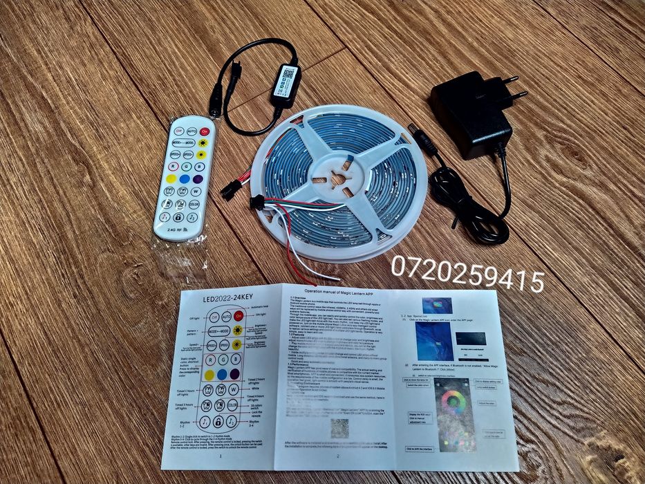 Kit Banda Led DIGITALA 5050 RGB IP65 / 5m cu Bluetooth +Telecomanda RF