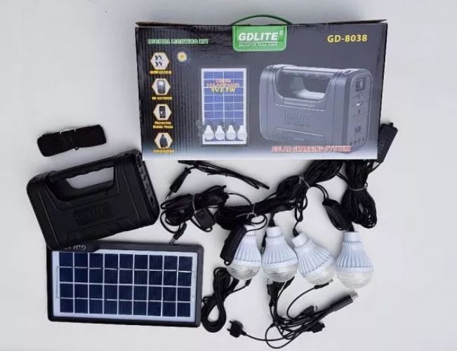 Panou solar kit fotovoltaic 4 becuri incarcare telefon lanterna Radio