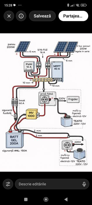 Kit fotovoltaic solar 220V Cabana / Stana / Rulota / Camping 1000w
