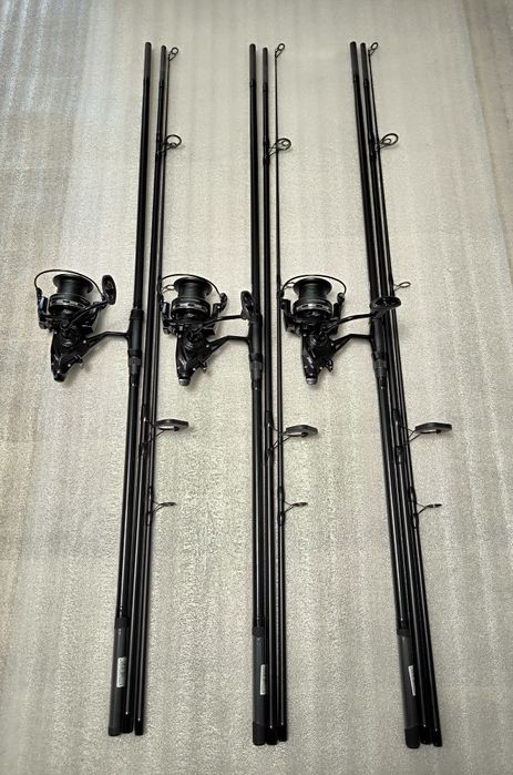 SET 3 Lansete FLX8 3.90M 3Segmente 3.5LBS + 3 Mulinete FL BLACK F 9000