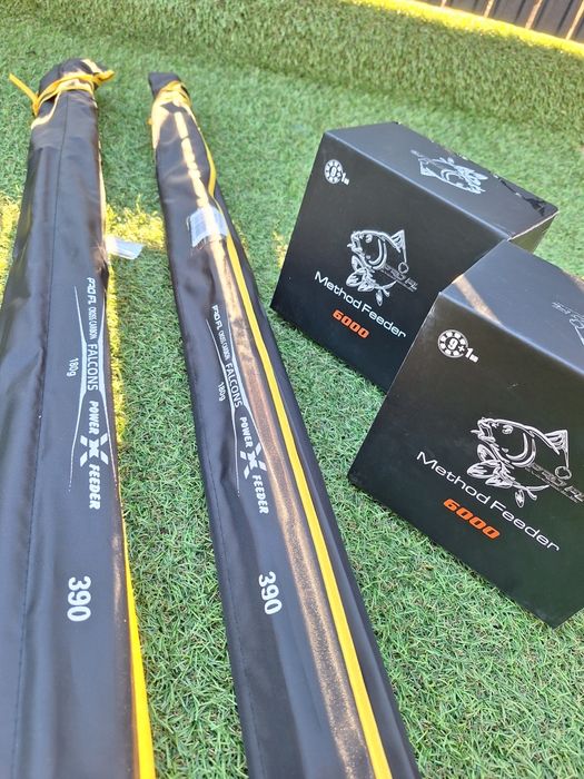 Set 2 Lansete Feeder Pro FL Falcons 3,9m 60-180 grame + FL METHOD Feed