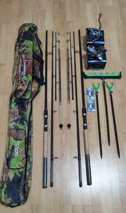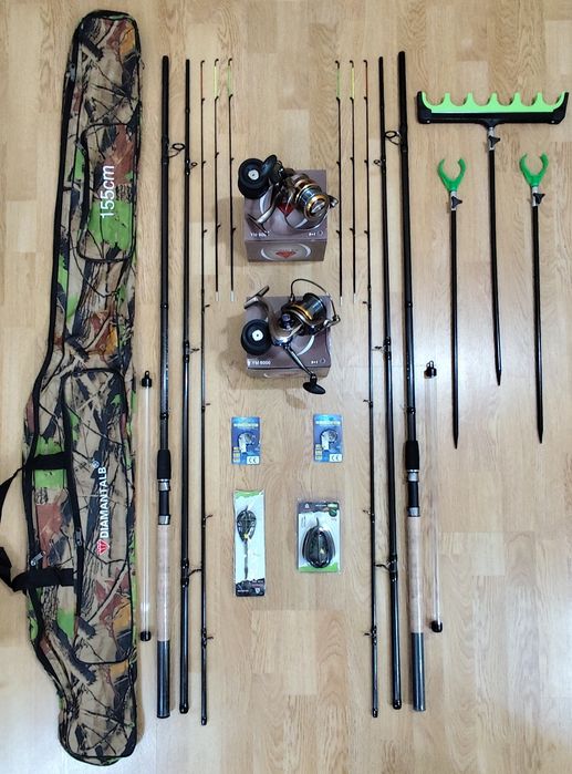 Set 2 Lansete Feeder Carbon 3,90m+2 Mulinete+Senzori,Husa,Suporti