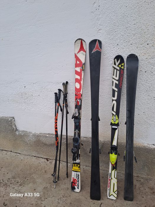 Vând schiuri Fisher Race 140 cm + bețe.Și Atomic 157 cm + bețe