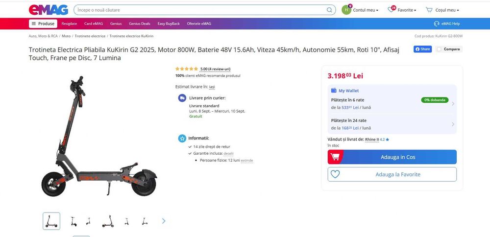 Găsește trotinete electrice de calitate, perfecte pentru nevoile tale. În categoria Trotinete Electrice, vei descoperi o gamă variată de produse potrivite pentru orice buget și preferințe. Fie că îți dorești un model simplu sau unul cu funcții avansate, ai multe opțiuni la prețuri competitive. Anunțurile sunt actualizate zilnic, așa că poți fi sigur că găsești cele mai noi și bune oferte disponibile. Trotinetele electrice oferite vin cu diverse caracteristici atractive, cum ar fi autonomie mare a bateriei, viteze multiple și design modern. Poți folosi filtrele pentru a găsi exact ceea ce cauți rapid și ușor. Te poți baza pe un furnizor de încredere pentru toate achizițiile tale din această categorie, iar tranzacțiile sunt sigure, fără stres. Mulți vânzători oferă opțiuni convenabile de livrare pentru a economisi timp și efort. Indiferent dacă ești interesat de modele premium sau cauciucuri specifice pentru scuter electric, în această categorie vei găsi produsele ideale pentru tine.