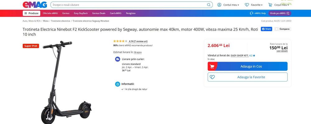 Găsește trotinete electrice de calitate, perfecte pentru nevoile tale. În categoria Trotinete Electrice, vei descoperi o gamă variată de produse potrivite pentru orice buget și preferințe. Fie că îți dorești un model simplu sau unul cu funcții avansate, ai multe opțiuni la prețuri competitive. Anunțurile sunt actualizate zilnic, așa că poți fi sigur că găsești cele mai noi și bune oferte disponibile. Trotinetele electrice oferite vin cu diverse caracteristici atractive, cum ar fi autonomie mare a bateriei, viteze multiple și design modern. Poți folosi filtrele pentru a găsi exact ceea ce cauți rapid și ușor. Te poți baza pe un furnizor de încredere pentru toate achizițiile tale din această categorie, iar tranzacțiile sunt sigure, fără stres. Mulți vânzători oferă opțiuni convenabile de livrare pentru a economisi timp și efort. Indiferent dacă ești interesat de modele premium sau cauciucuri specifice pentru scuter electric, în această categorie vei găsi produsele ideale pentru tine.