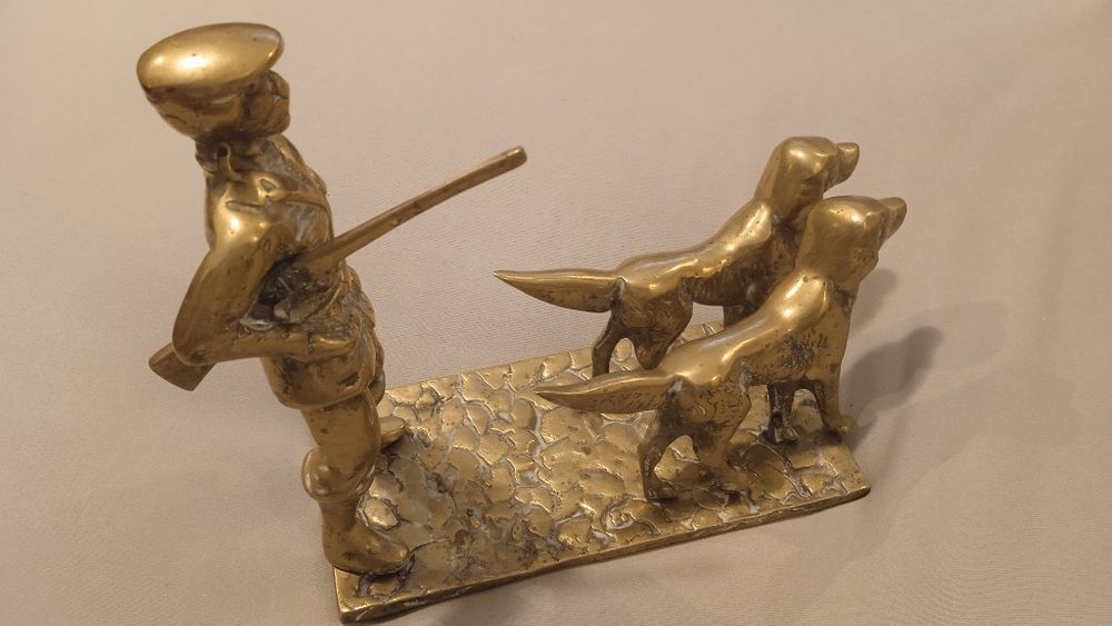 Vanator cu arma si 2 caini de vanatoare, figurina din alama, 2.2 kg