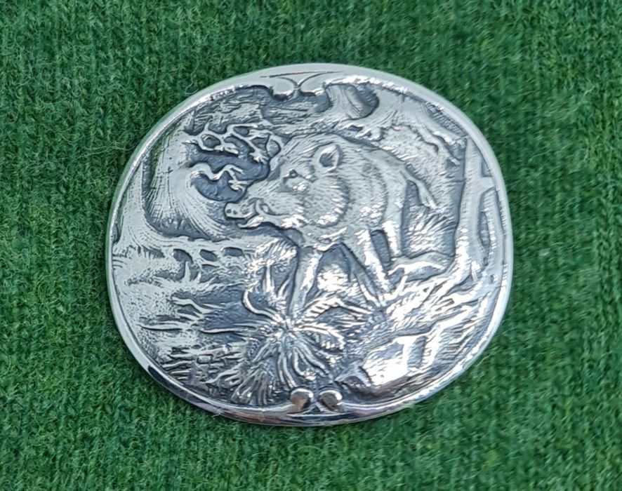 Podoabă de vânătoare din argint masiv unicat scenă cu mistreț