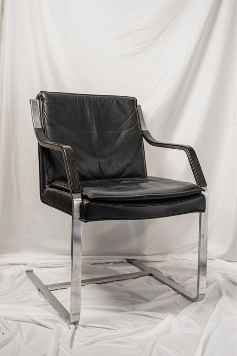 Walter Knoll - model Alpha, set 2 scaune; mid century, piele, inox