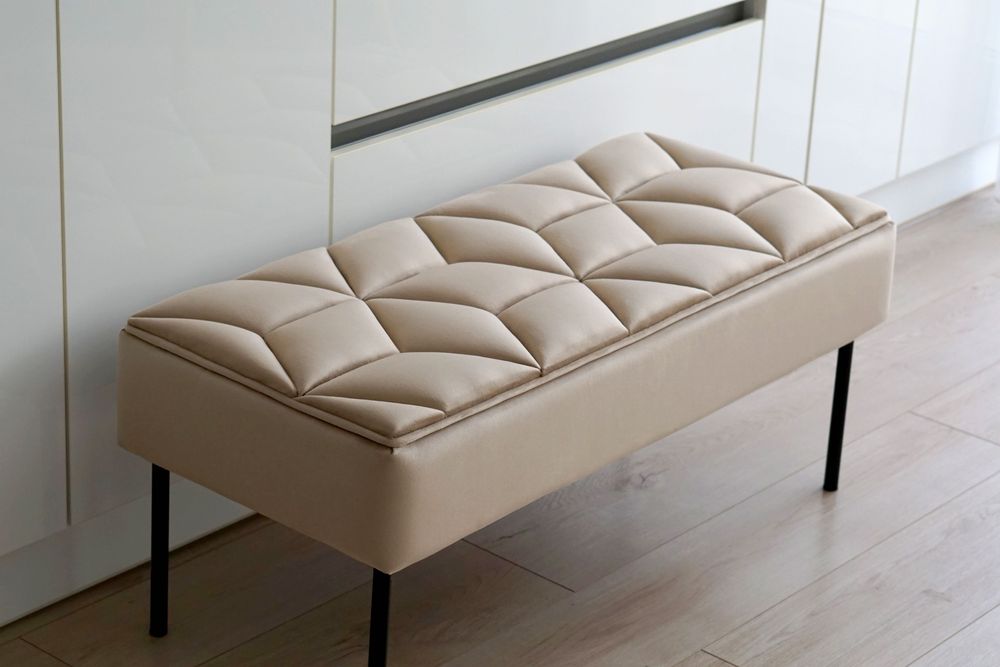 Bancheta din catifea bej cu forme hexagonale