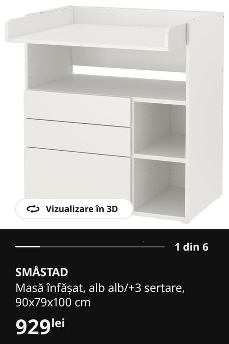 Masă înfășată, albă, cu 3 sertare SMÅSTAD Ikea
