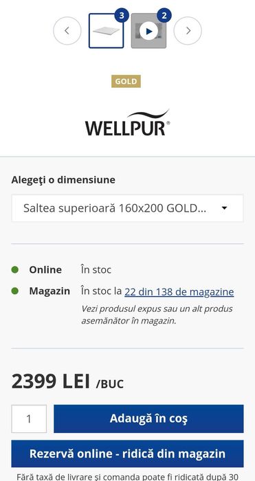 Saltea superioară 160x200 GOLD WELLPUR
