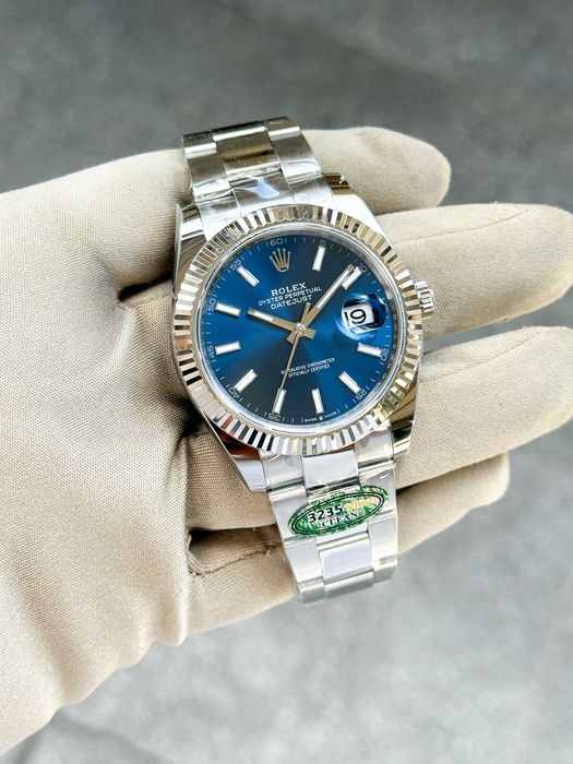 Rolex Datejust Bright Blue Dial Fluted Bezel Steel 41mm
