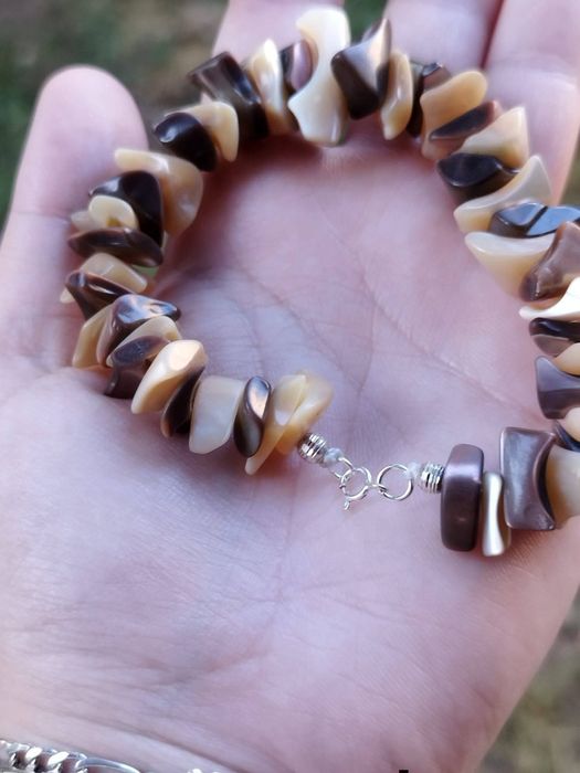 Bratara veche din scoici naturale mother of pearl, argint 925