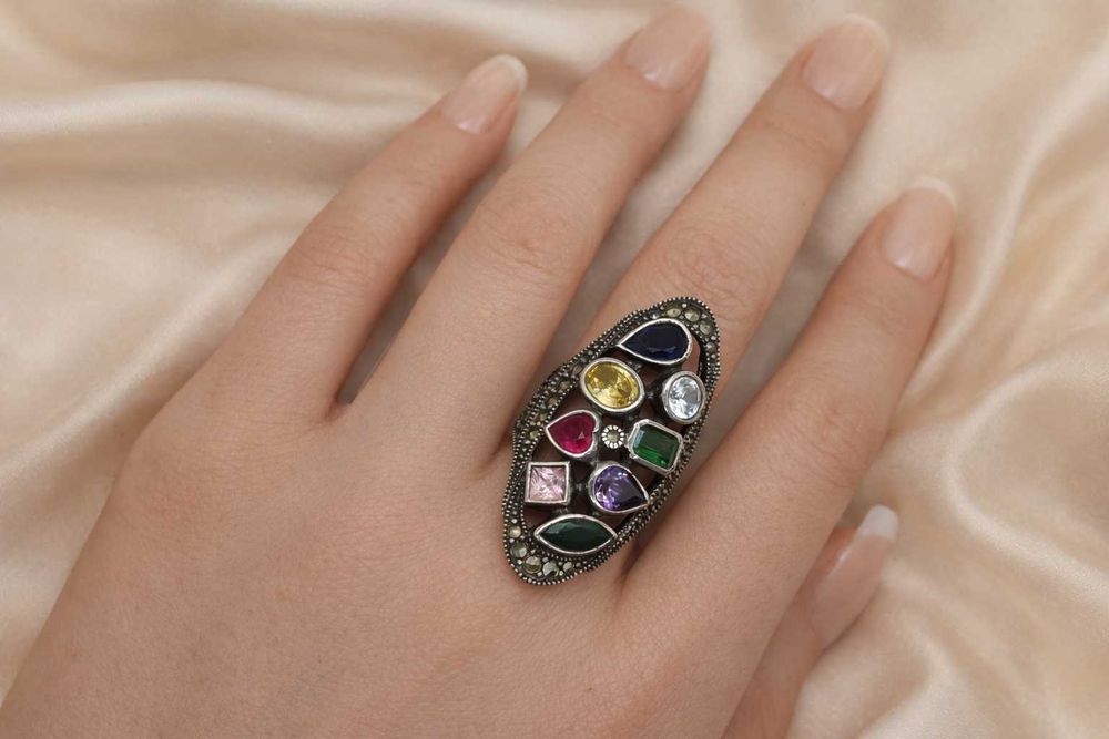 Inel Argint „Multi-Gem” & Marcasite – Stil Art Deco