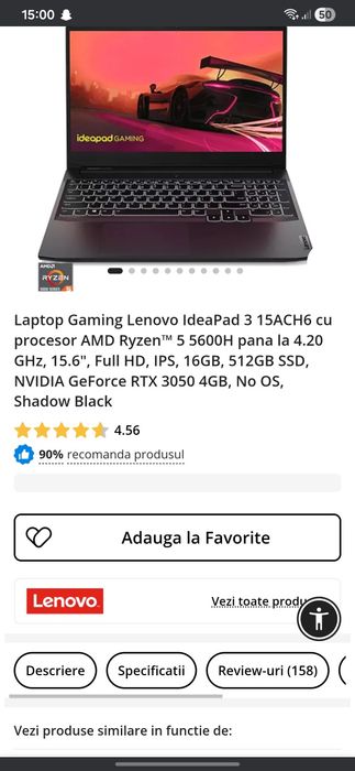 Vând laptop Lenovo IdeaPad gaming 3