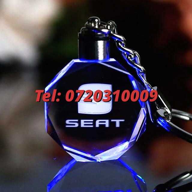 Oferta Breloc Sticla Cristal Led 6 Culori Seat Logo Sau Alte Auto