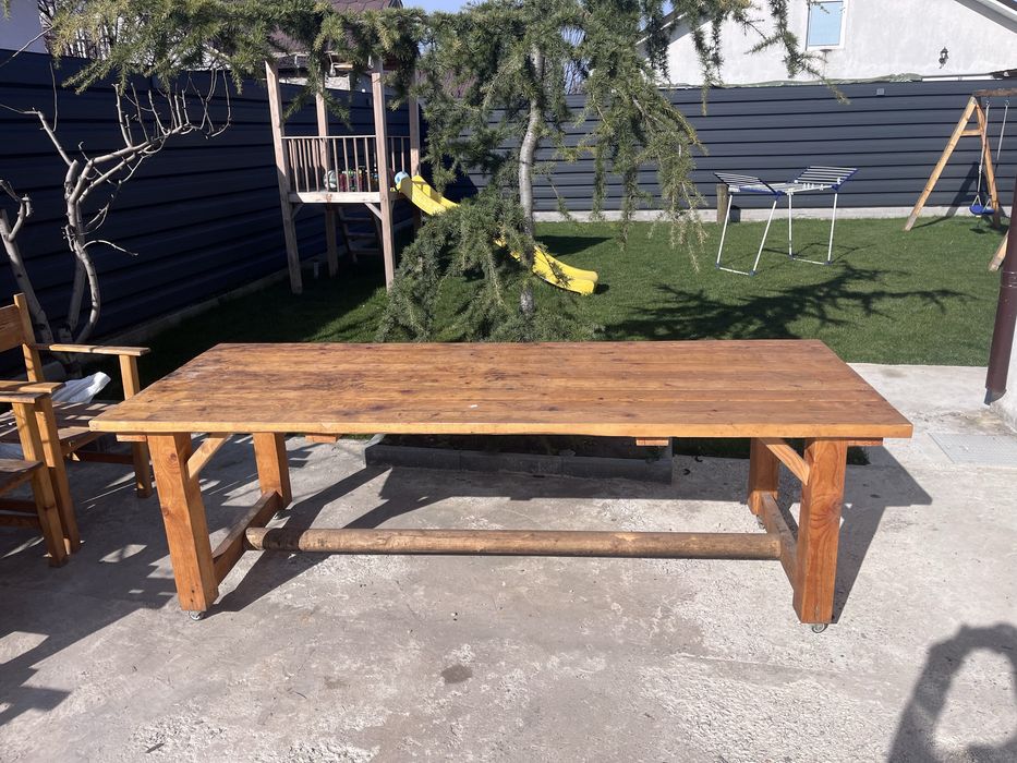 Masa lemn brut si patru scaune