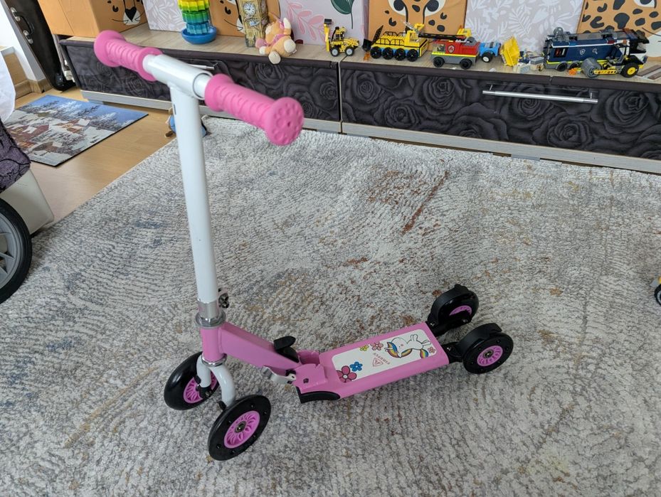 Trotineta fetițe, Intersport, 4 roți, ajustabilă, pliabila