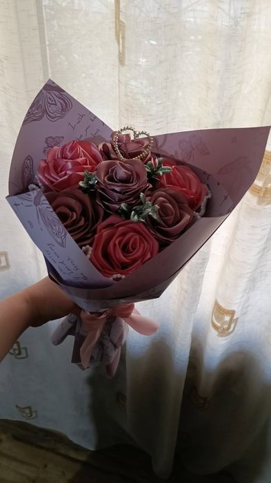 Buchet trandafiri de satin