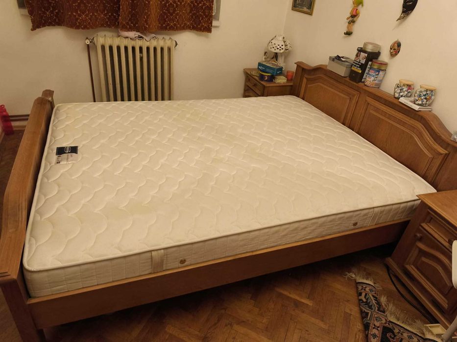 Pat matrimonial cu saltea si doua sertare pentru depozitare