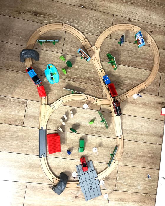 Trenul cu sine de lemn, cu accesorii