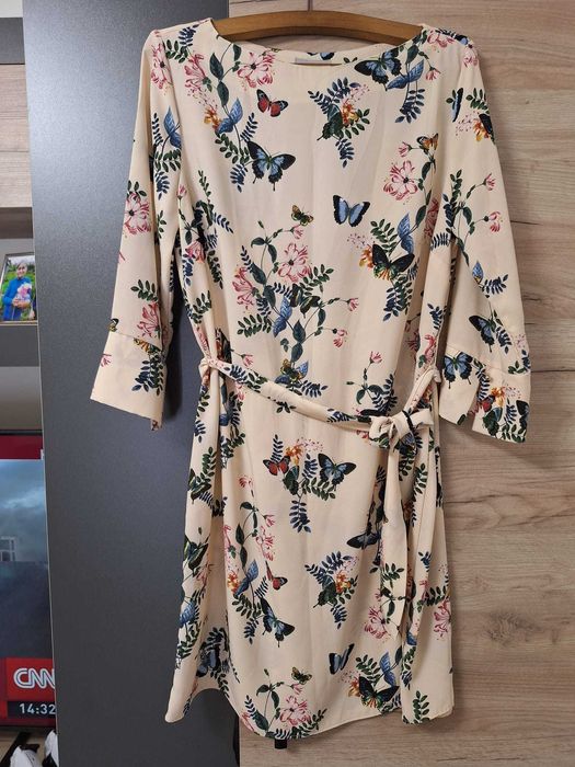 Rochie H&M crem cu imprimeu fluturi și flori – Mărimea 44
